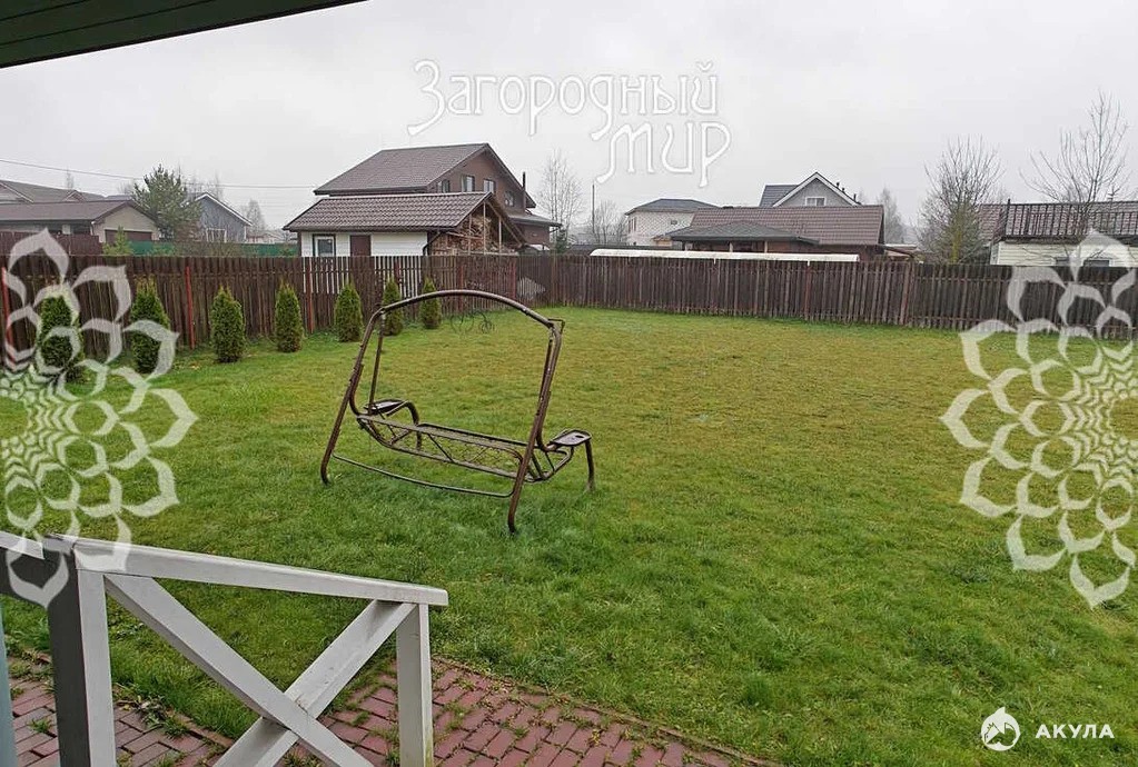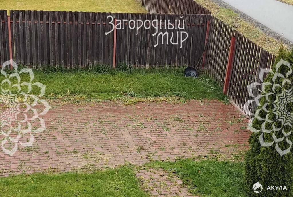 Участок ровный, прямоугольный, солнечный. Огорожен забором в общем поселковом стиле. Подъезд к участку - асфальт, дорожка к калитке и к парковке на участке забетонированы. Вдоль забора высажены туи, перед домом плодовые деревья и кусты. Большой, красивый газон. За счёт расположения на высоком месте, на участке всегда сухо. Посёлок полностью жилой. Все коммуникации центральные: газ, электричество, вода, канализация. Всё действует.